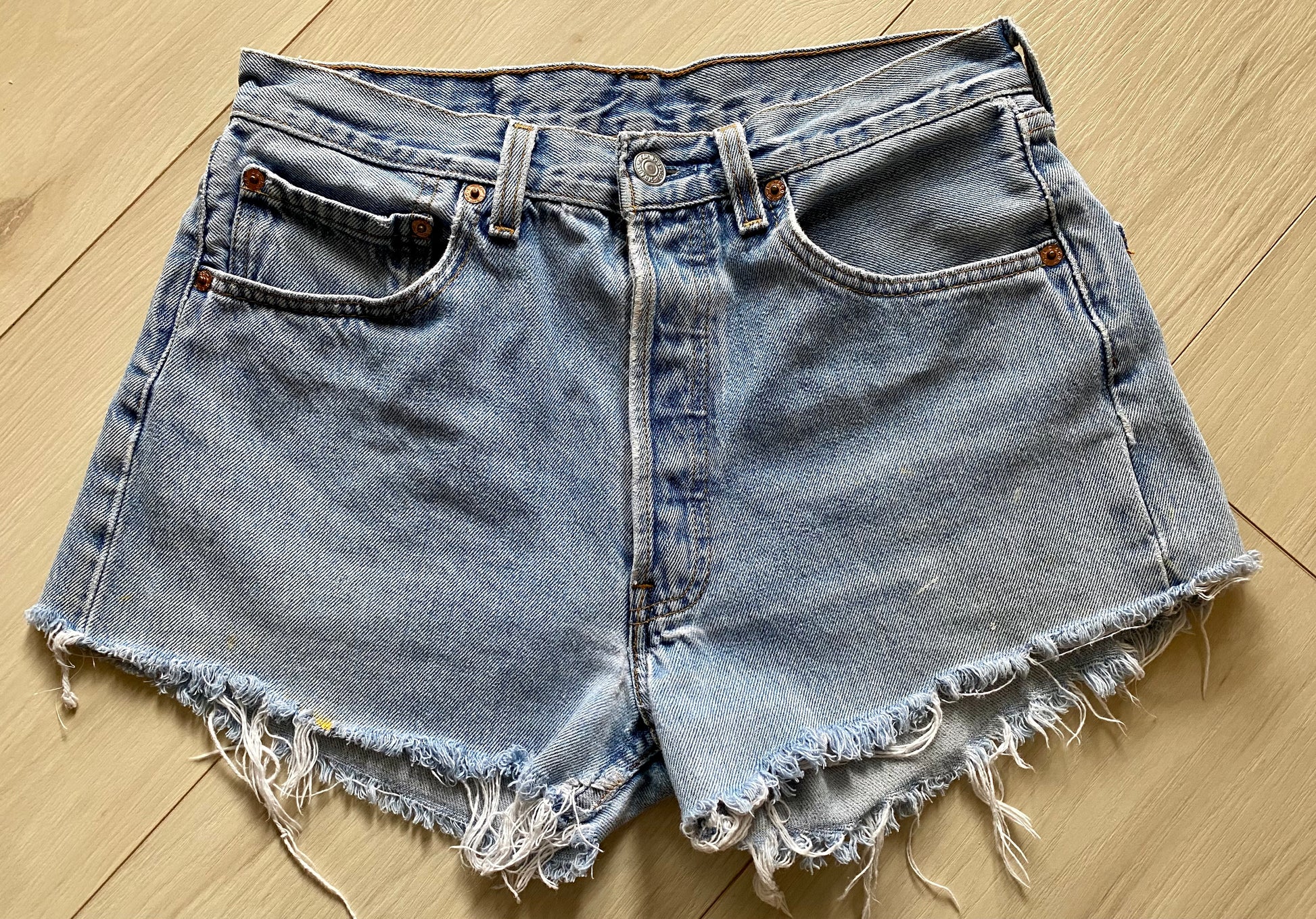 Light/medium wash Levi’s 501 cut off shorts. Some small paint marks and one back pocket has been adjusted, no other alterations have been made. Tagged a 31, these best fit a size 28/29 but please note measurements.